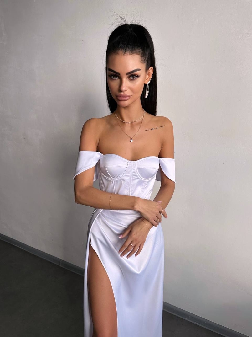 Атласний комплект: корсет бюстʼє + спідниця максі