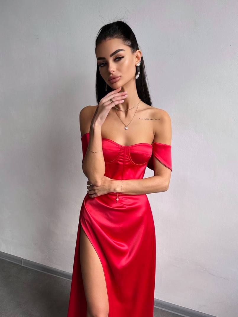 Атласний комплект: корсет бюстʼє + спідниця максі