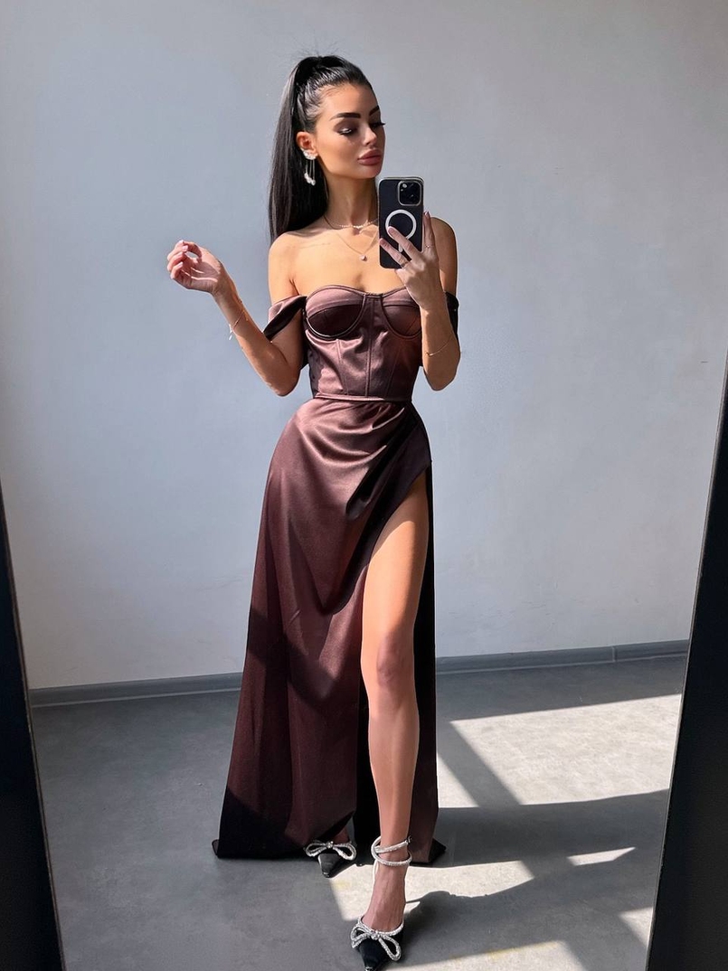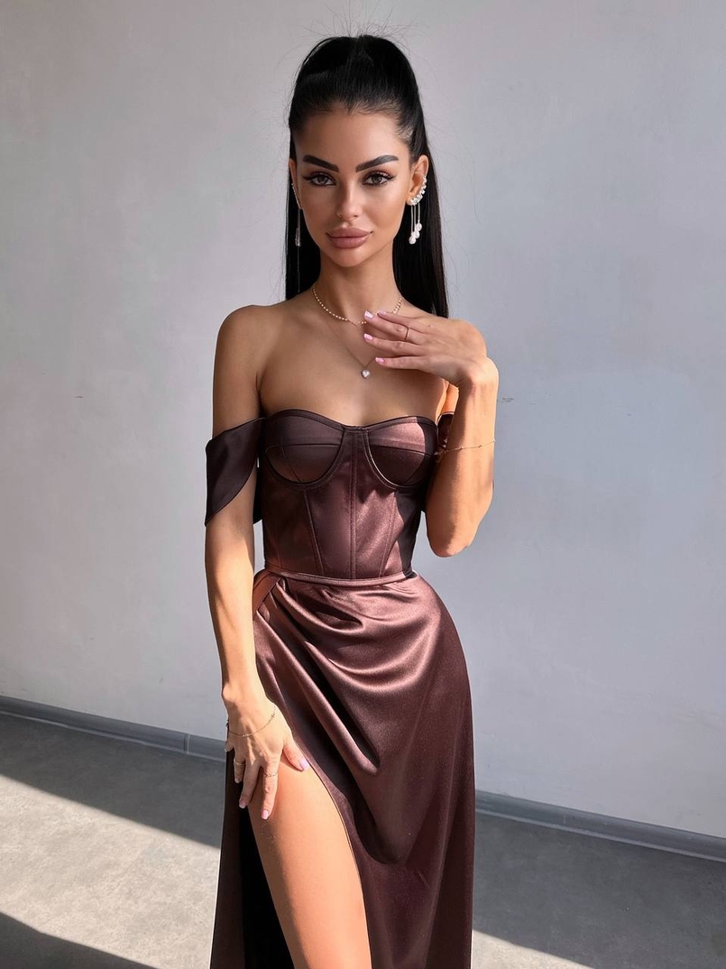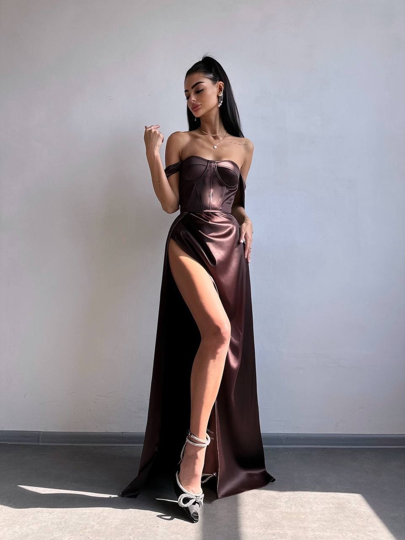 Атласний комплект: корсет бюстʼє + спідниця максі