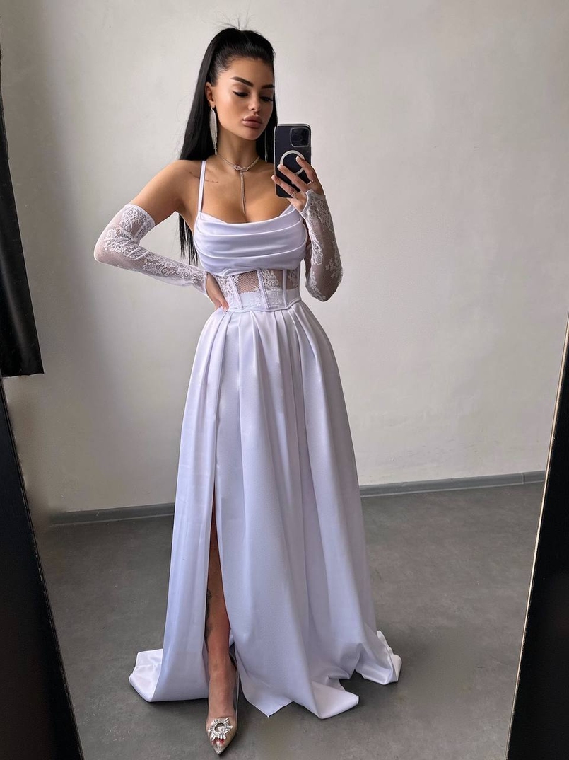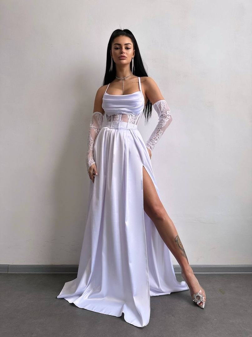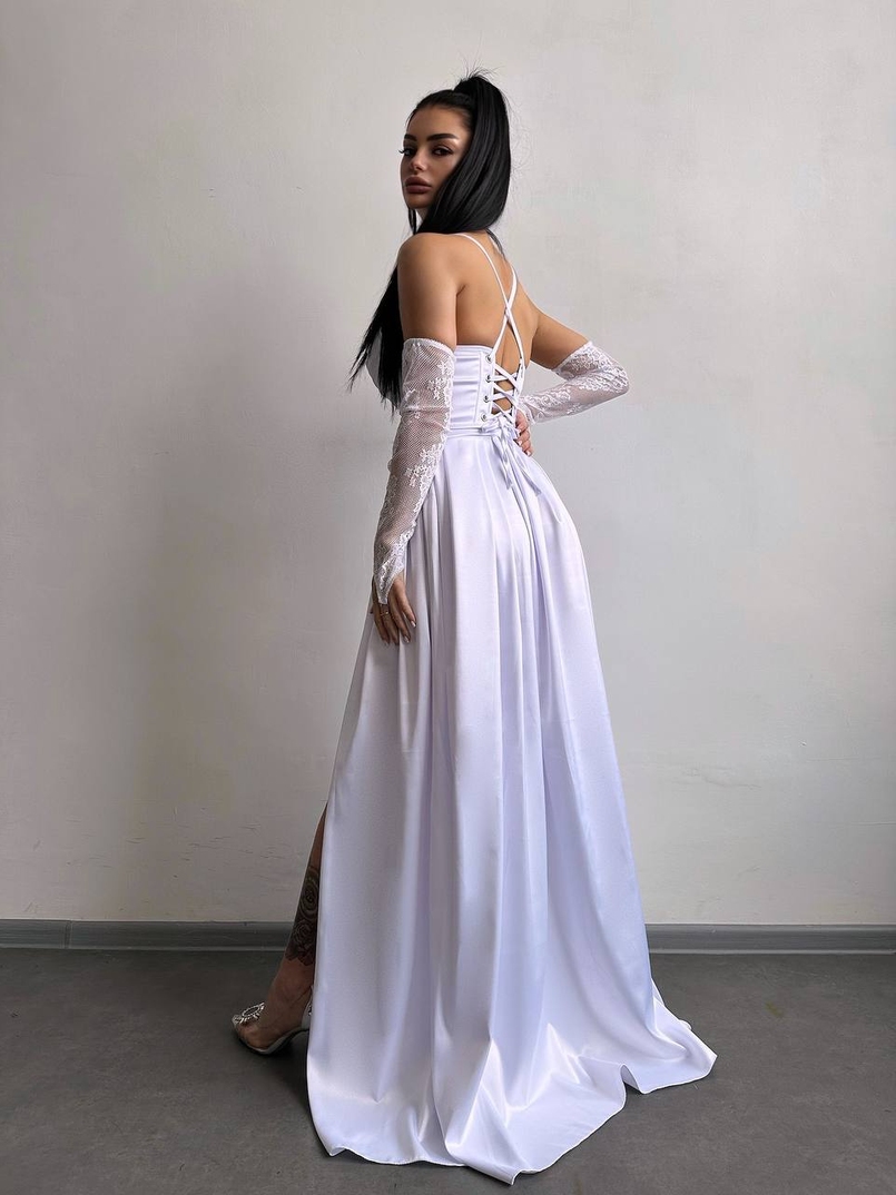 Атласний комплект: корсет + спідниця максі
