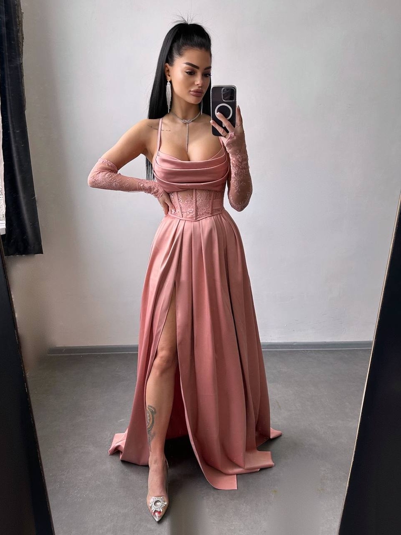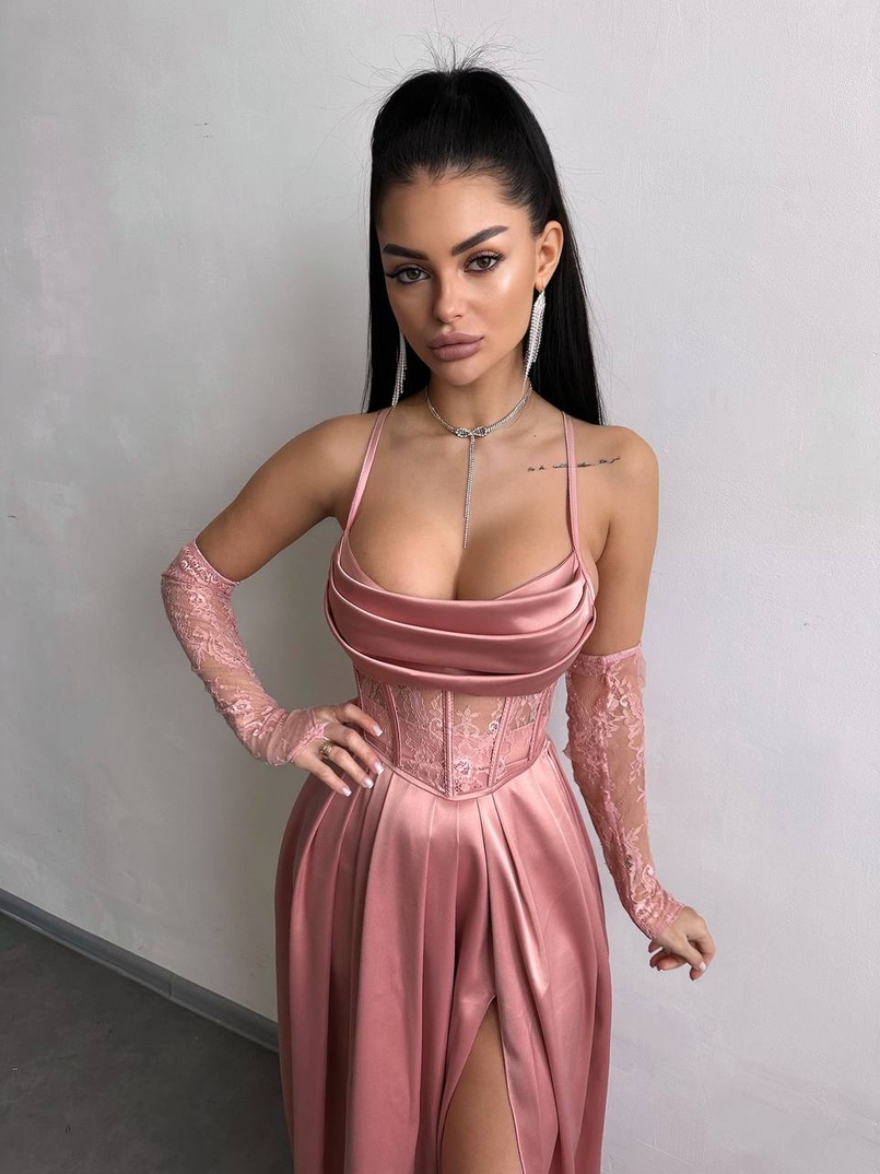 Атласний комплект: корсет + спідниця максі
