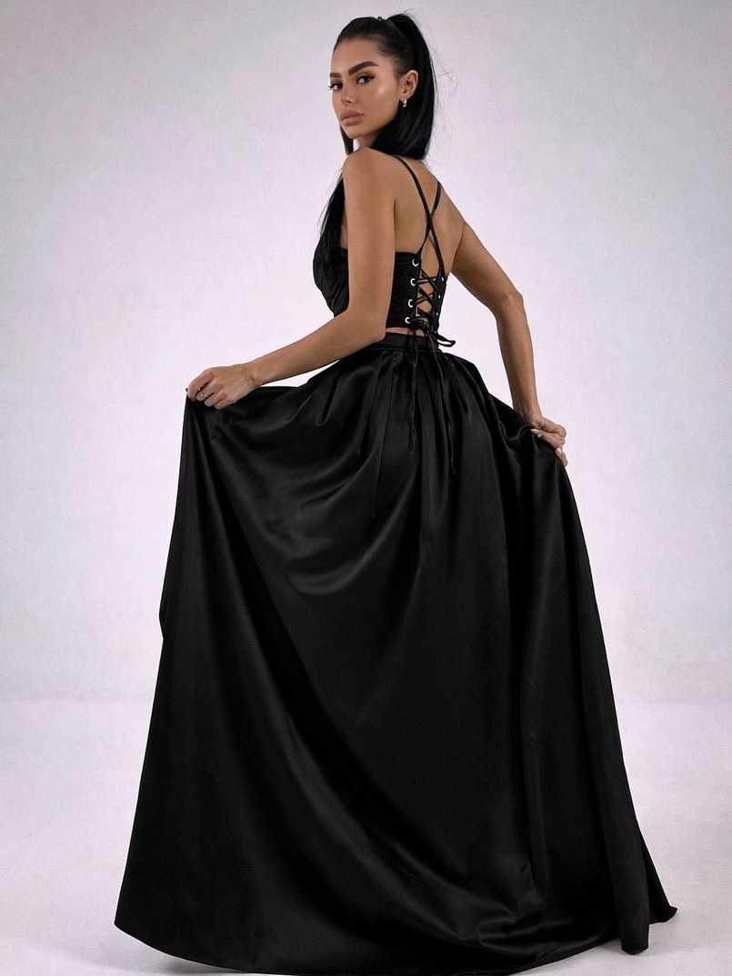 Атласний комплект: корсет + спідниця максі