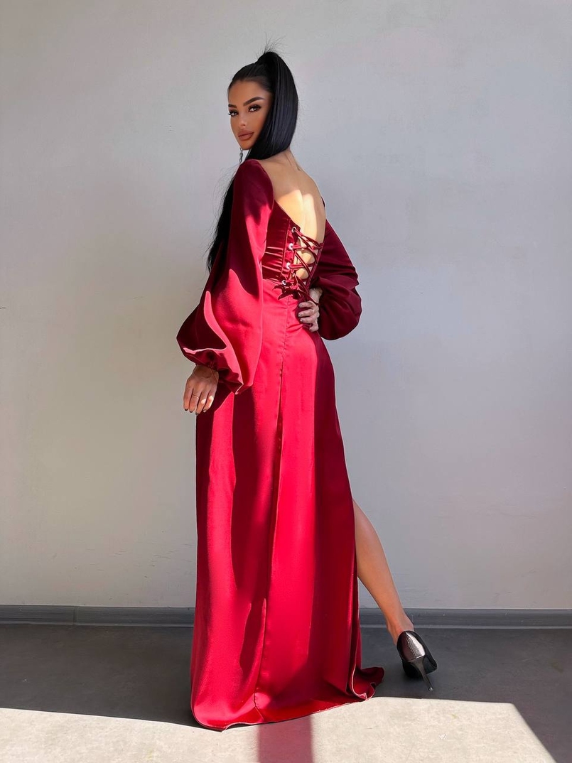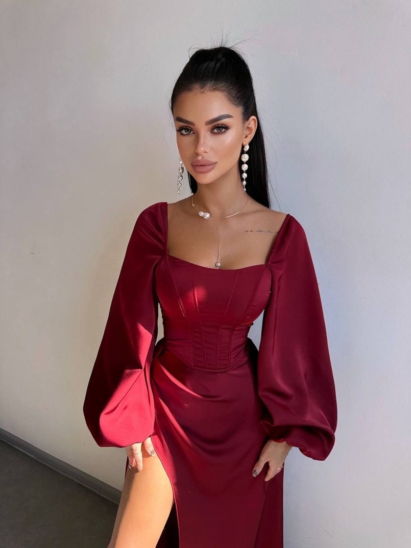 Атласний комплект: корсет + спідниця максі з драпіруванням