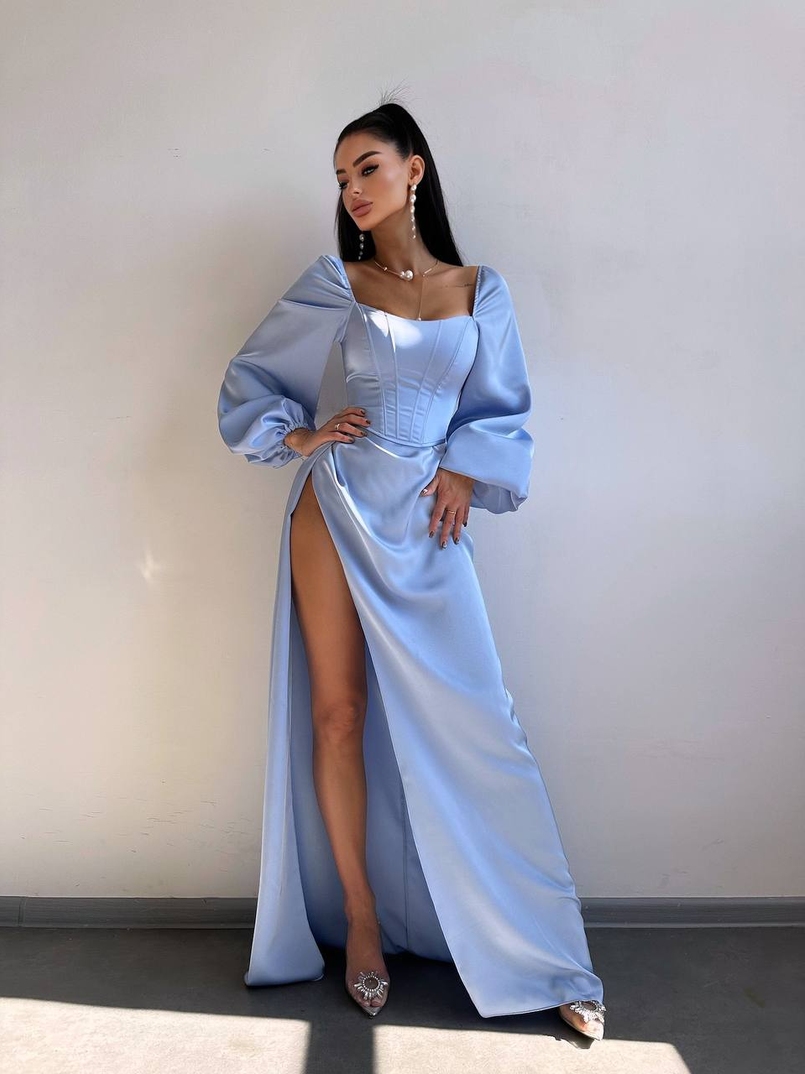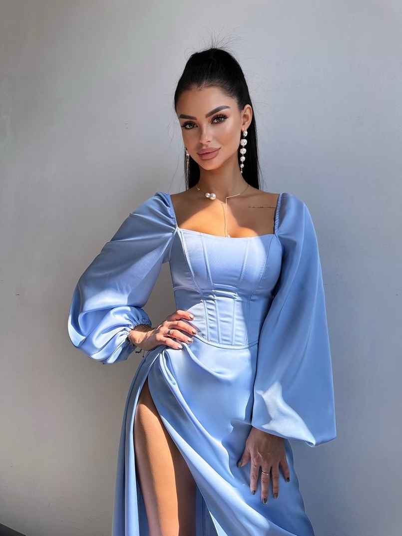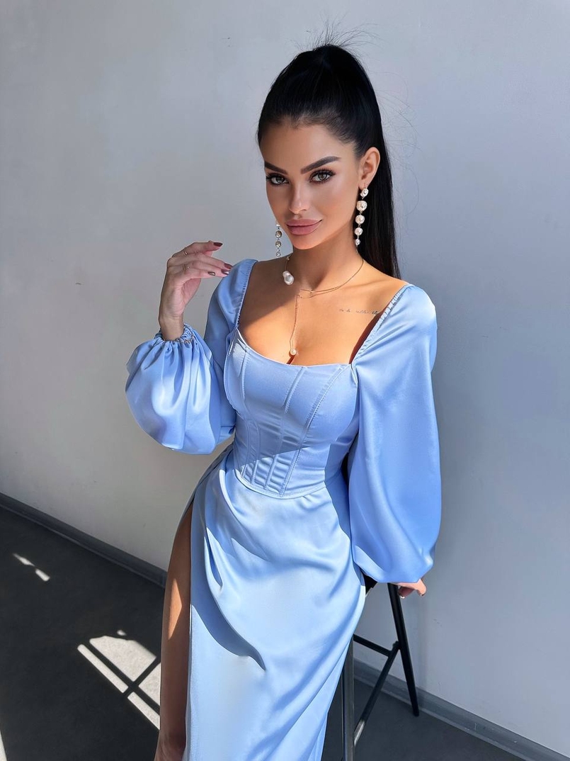 Атласний комплект: корсет + спідниця максі з драпіруванням