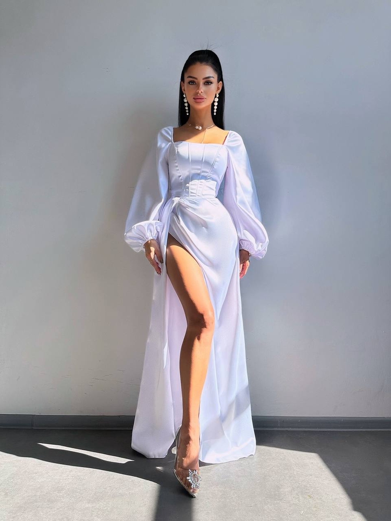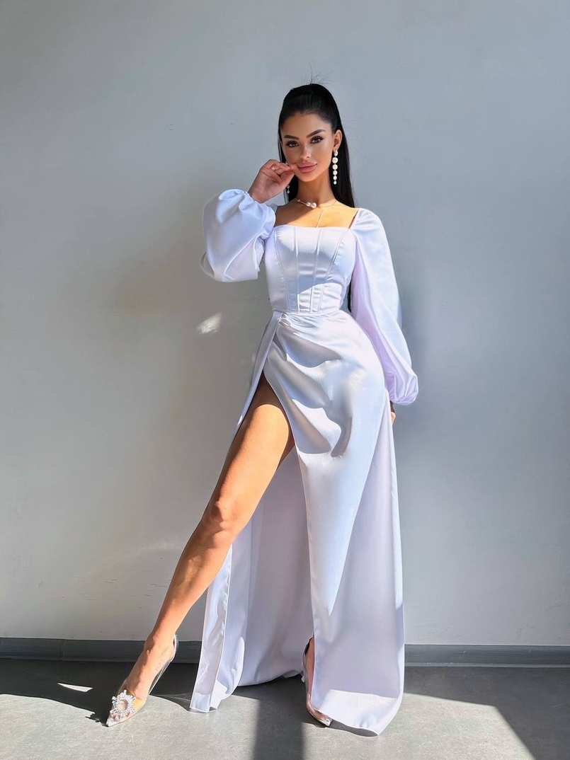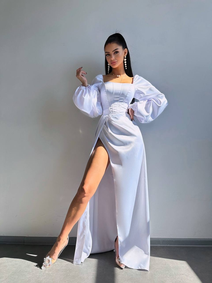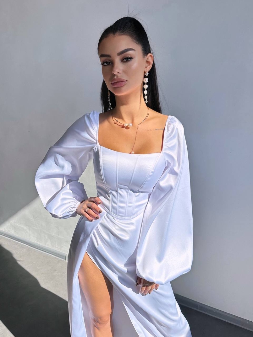 Атласний комплект: корсет + спідниця максі з драпіруванням
