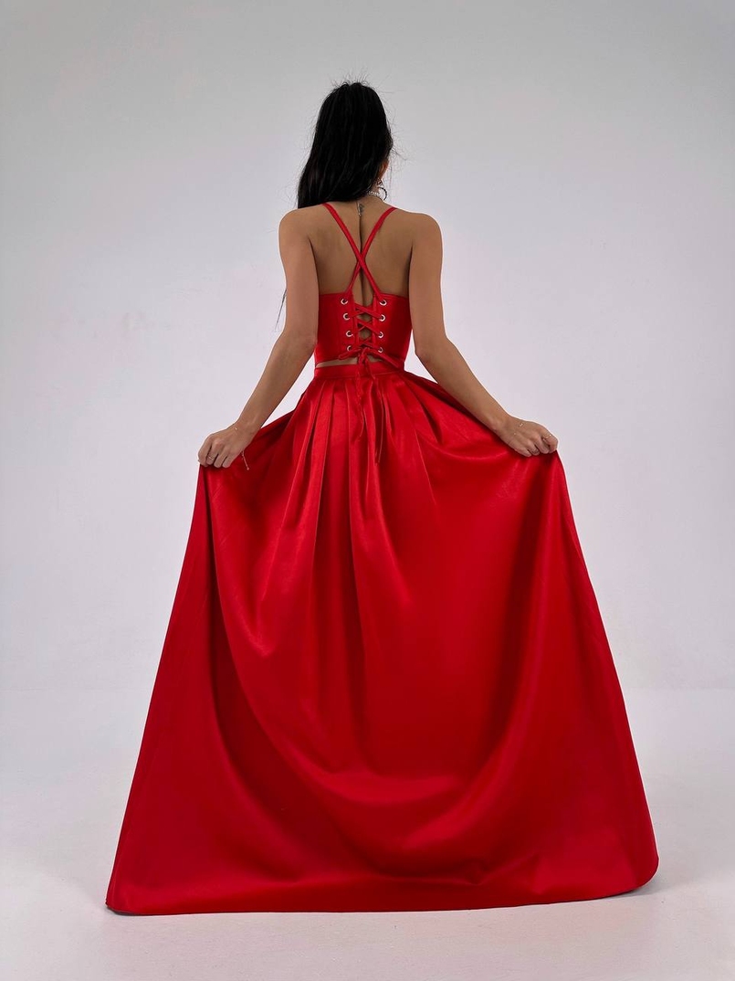 Атласний комплект: корсет + спідниця максі