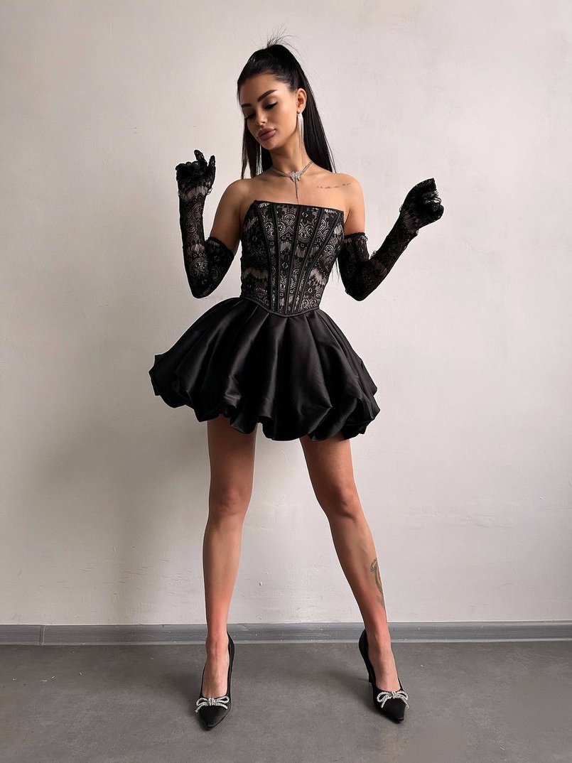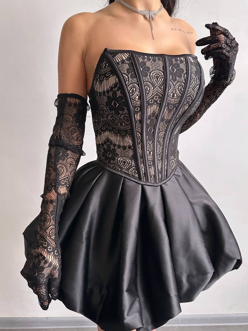 Комплект : мереживний корсет з рукавичками + спідниця балон