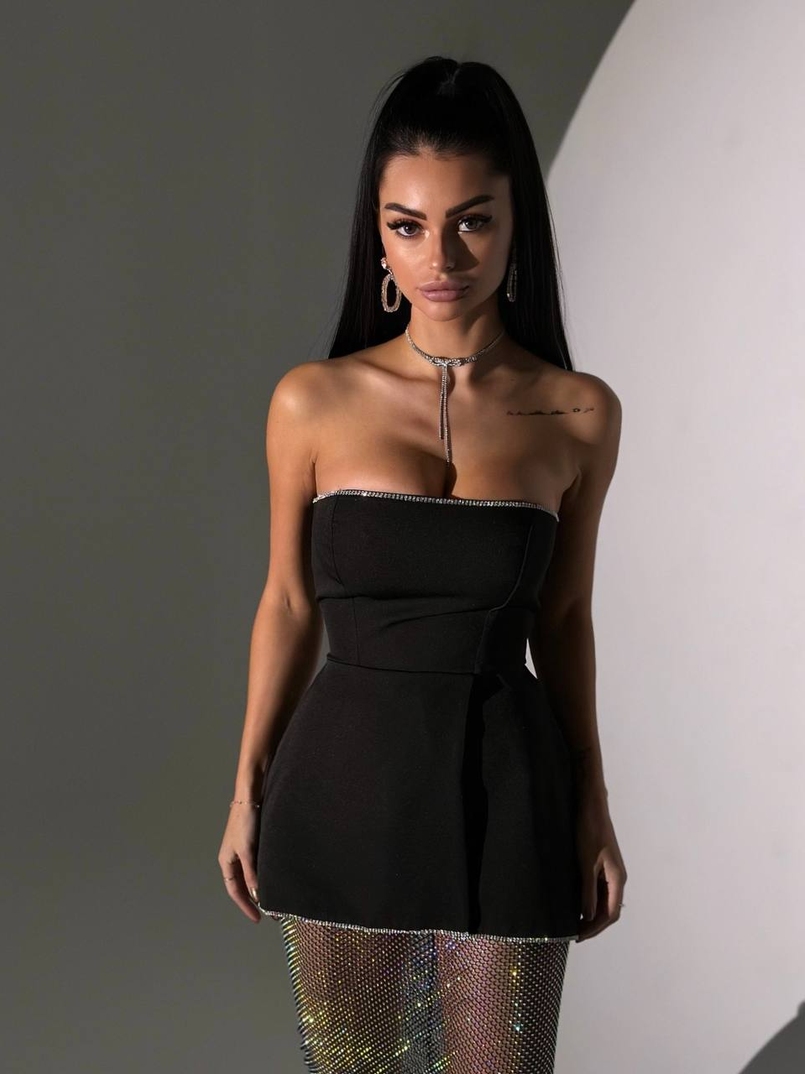 Комплект: сяюча спідниця + топ з баскою, декорований стразами Ручна робота