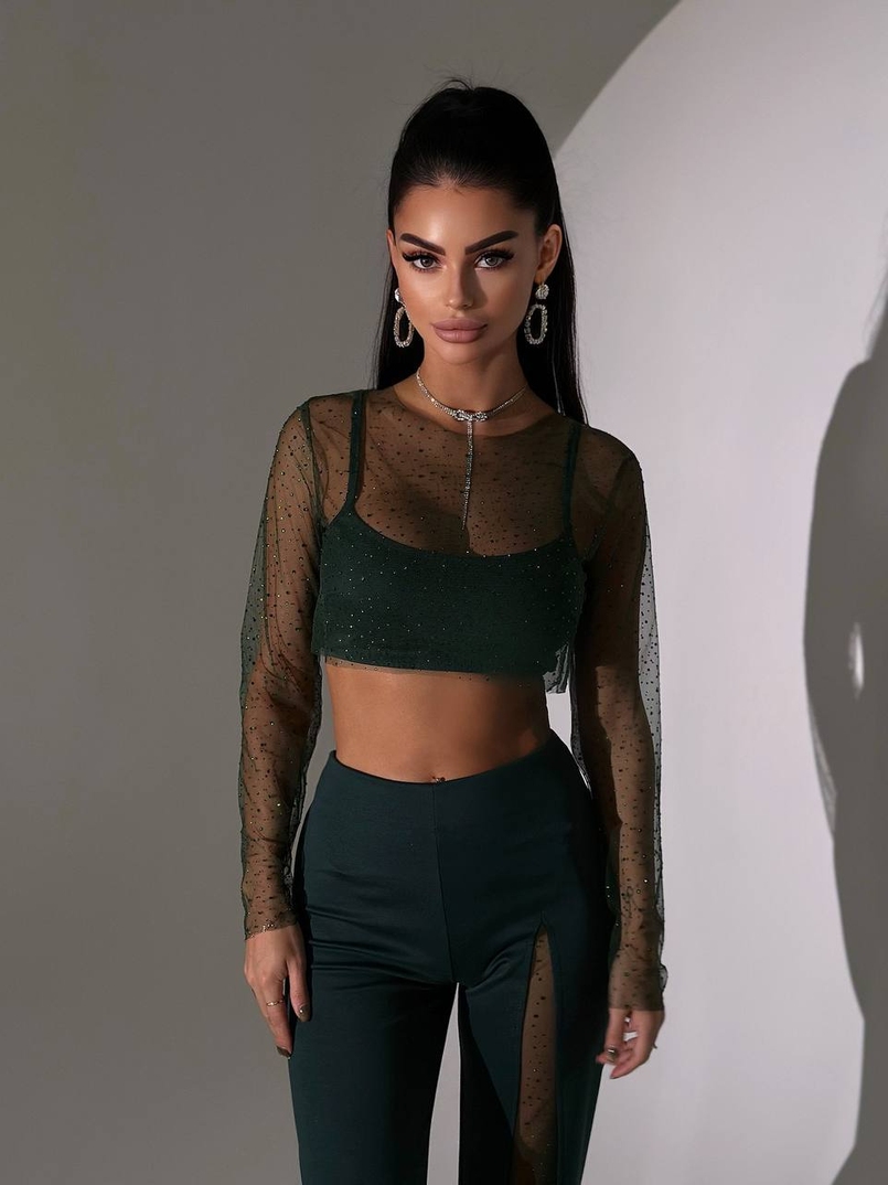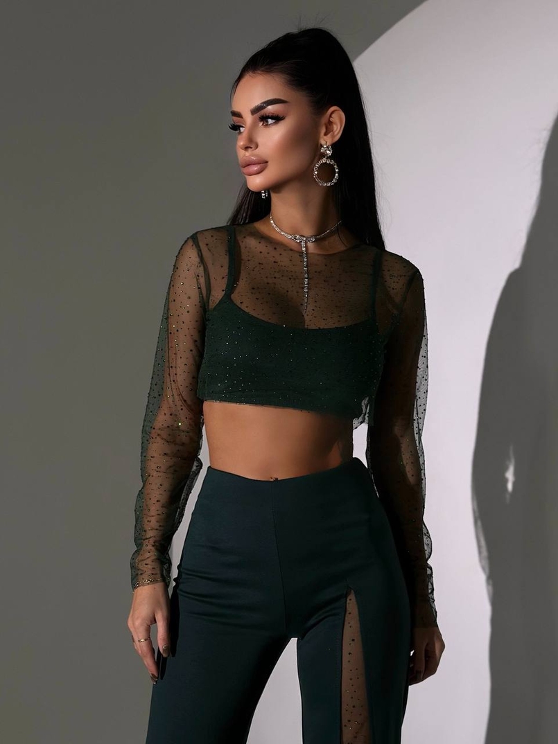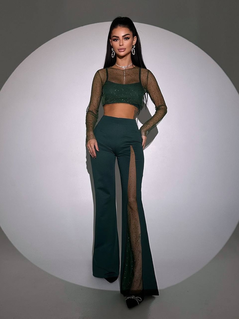 Комплект: топ + штани із сіткою зі стразами
