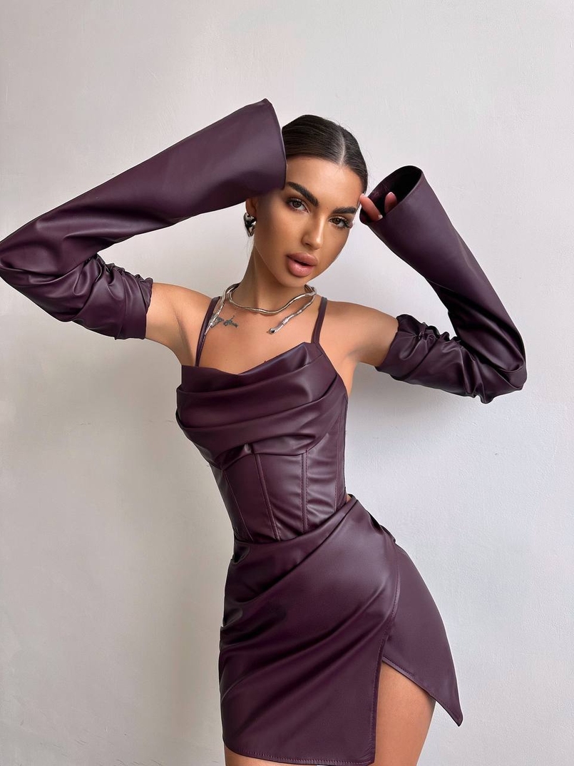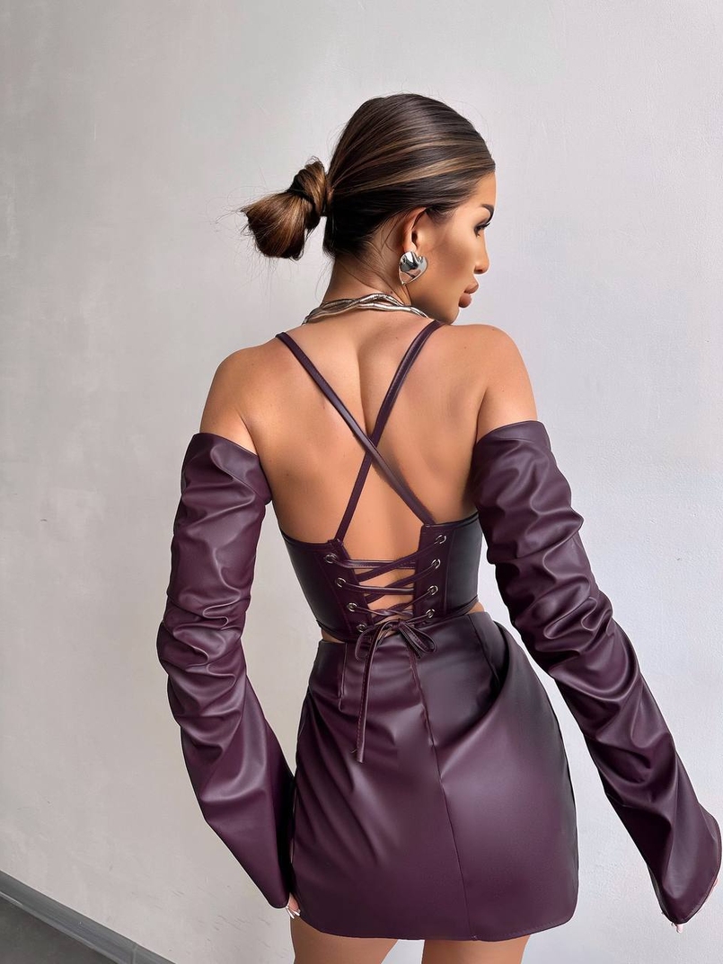 Комплект з еко шкіри: корсет з чашечками+ спідниця міні