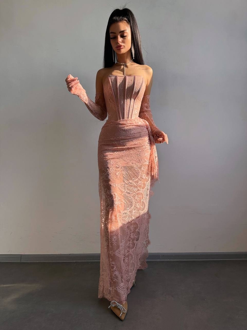 Мереживна сукня максі з рукавичками