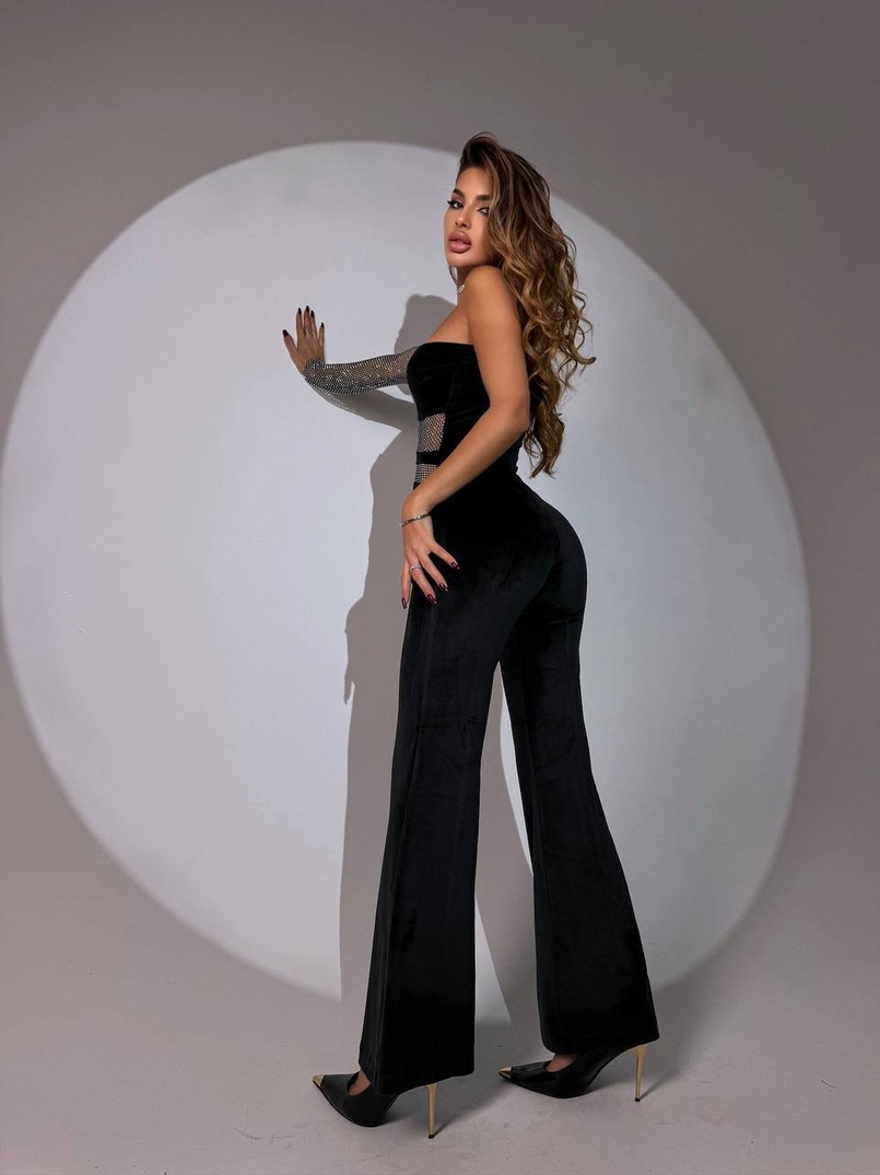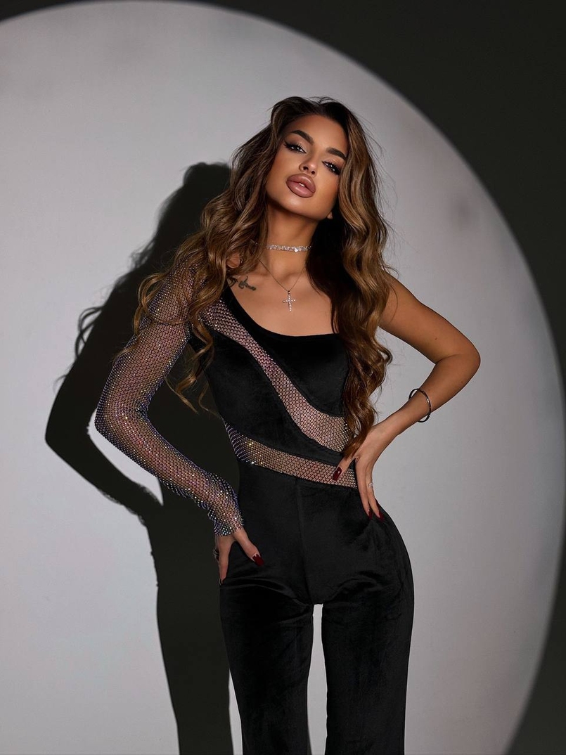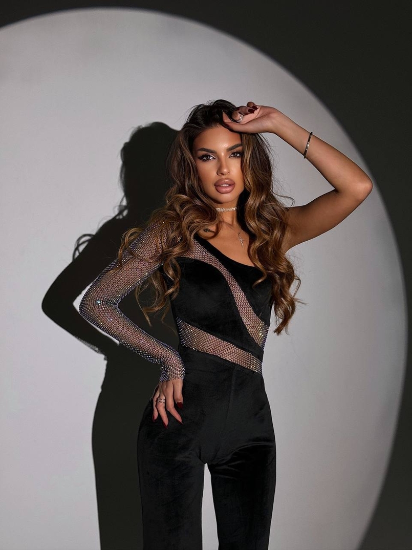 Оксамитовий комбінезон із сіткою зі стразами