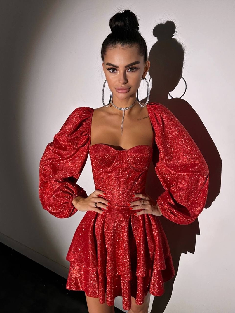 Сяюча корсетна сукня бюстьє з подвійною спідницею