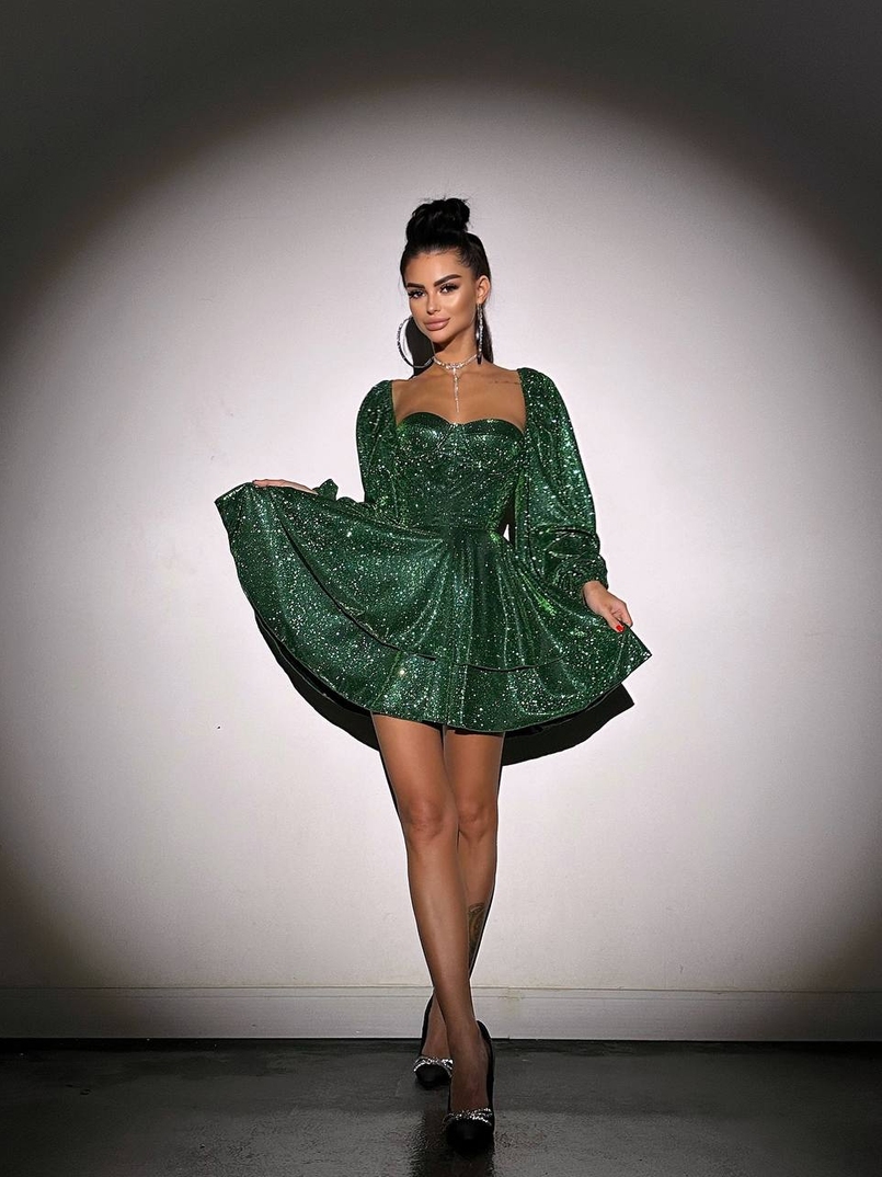 Сяюча корсетна сукня бюстьє з подвійною спідницею