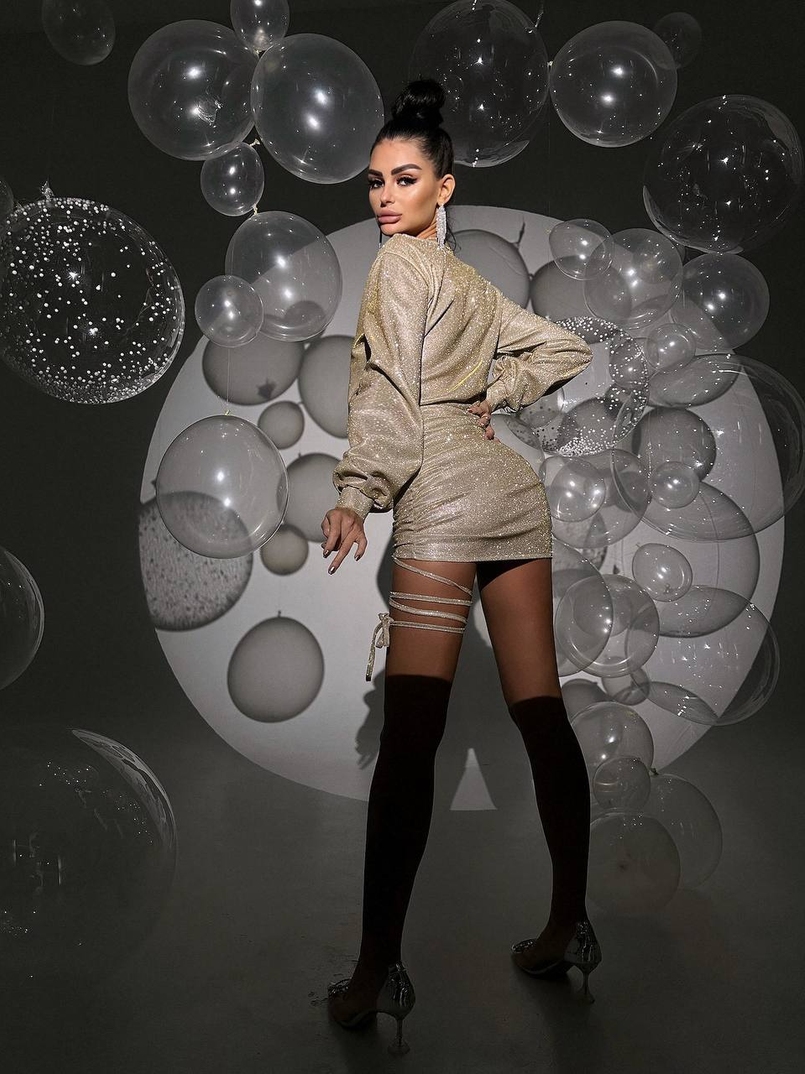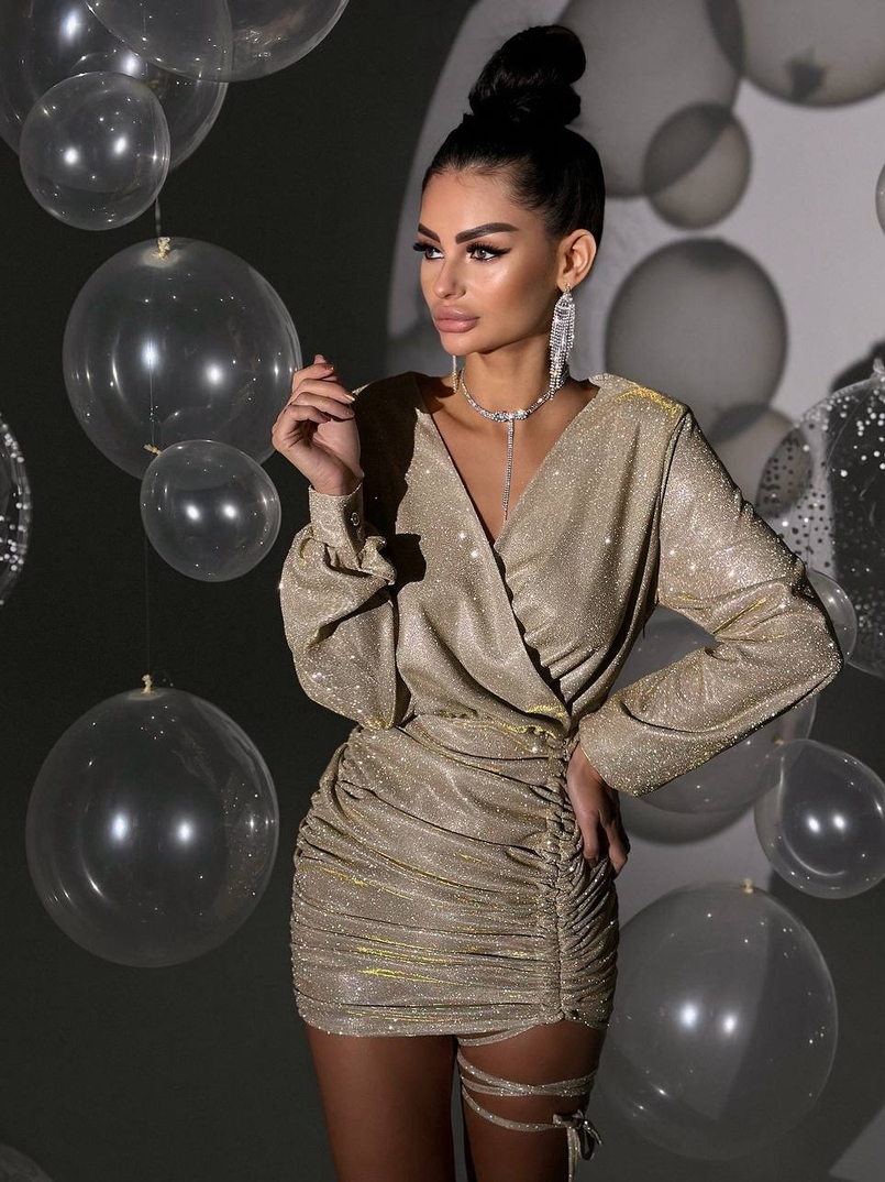 Сяюча сукня міні із завʼязкою на ніжці
