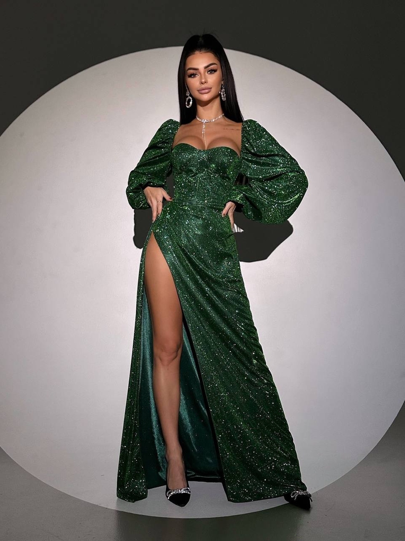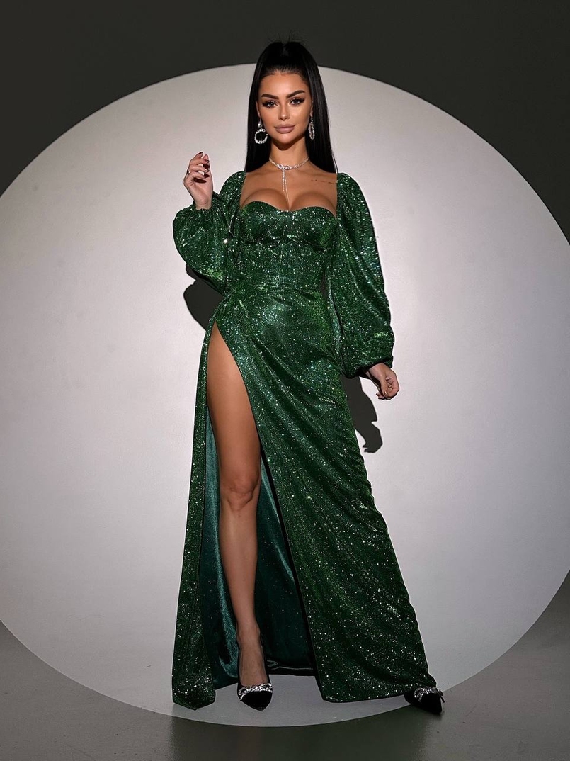 Сяючий комплект: корсет + спідниця максі з драпіруванням