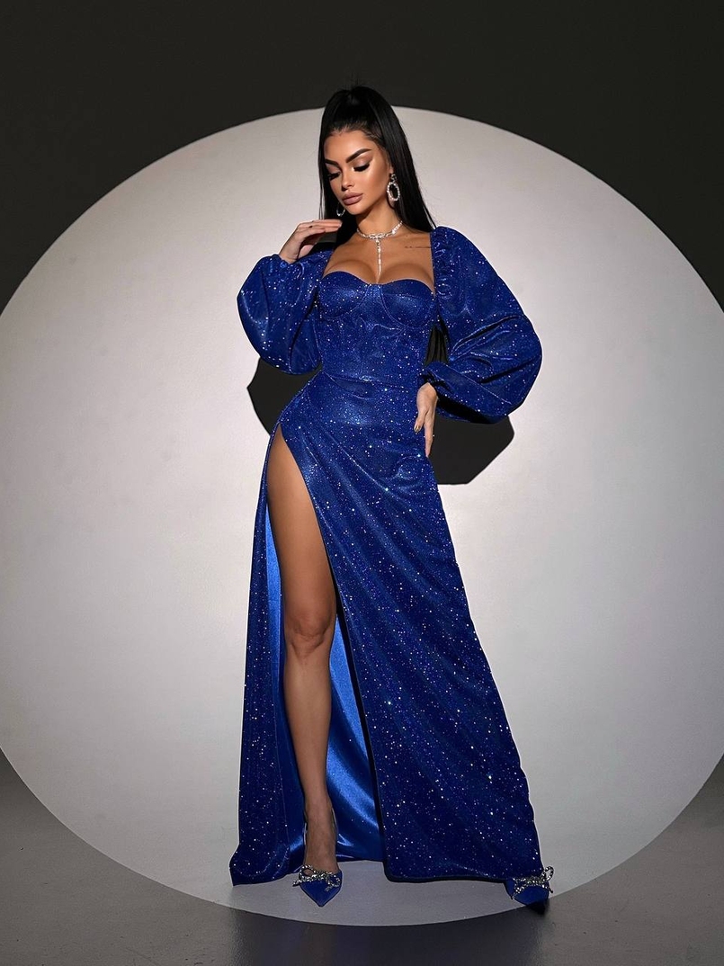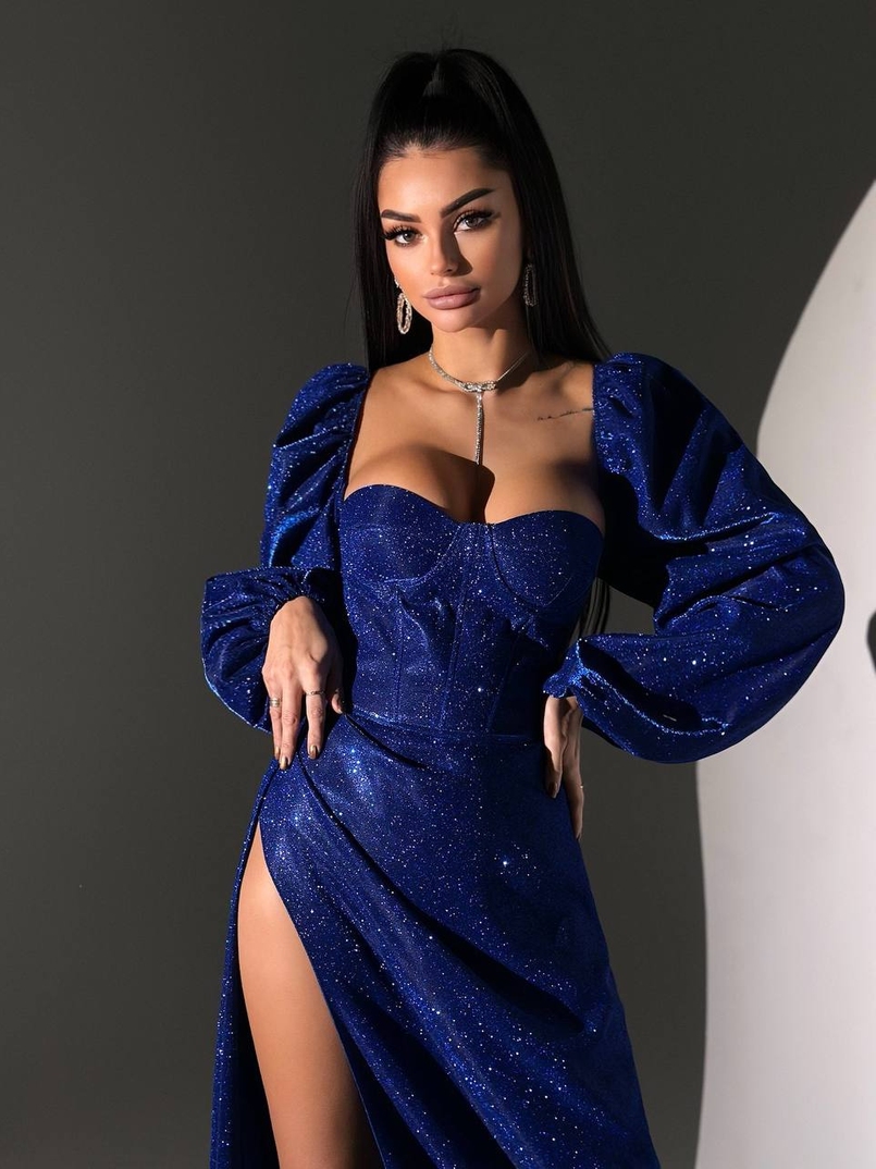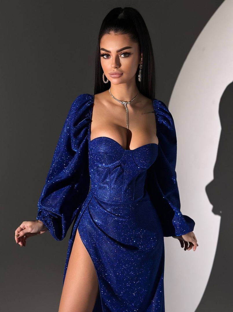 Сяючий комплект: корсет + спідниця максі з драпіруванням