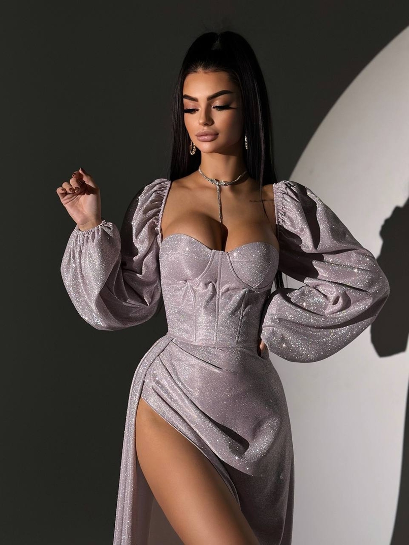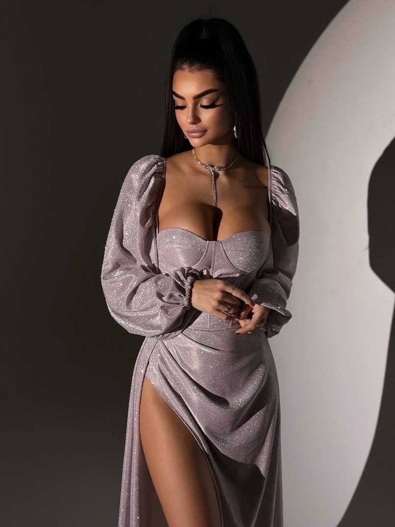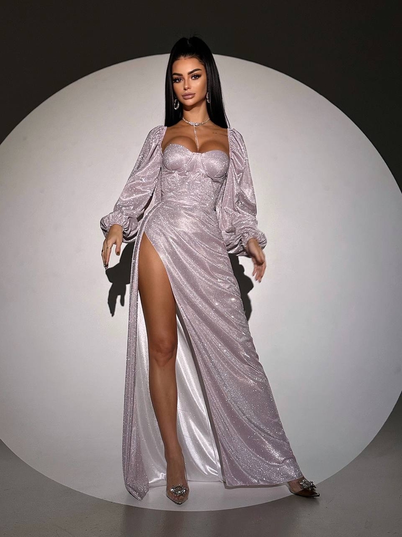 Сяючий комплект: корсет + спідниця максі з драпіруванням
