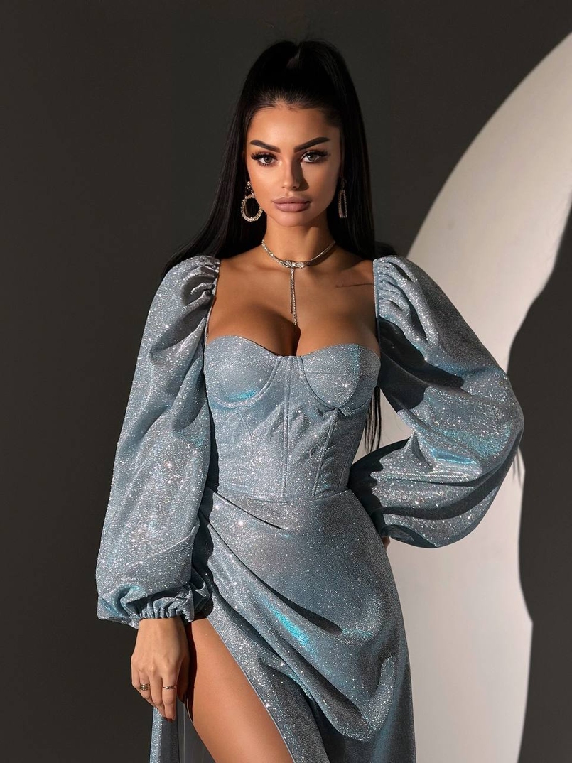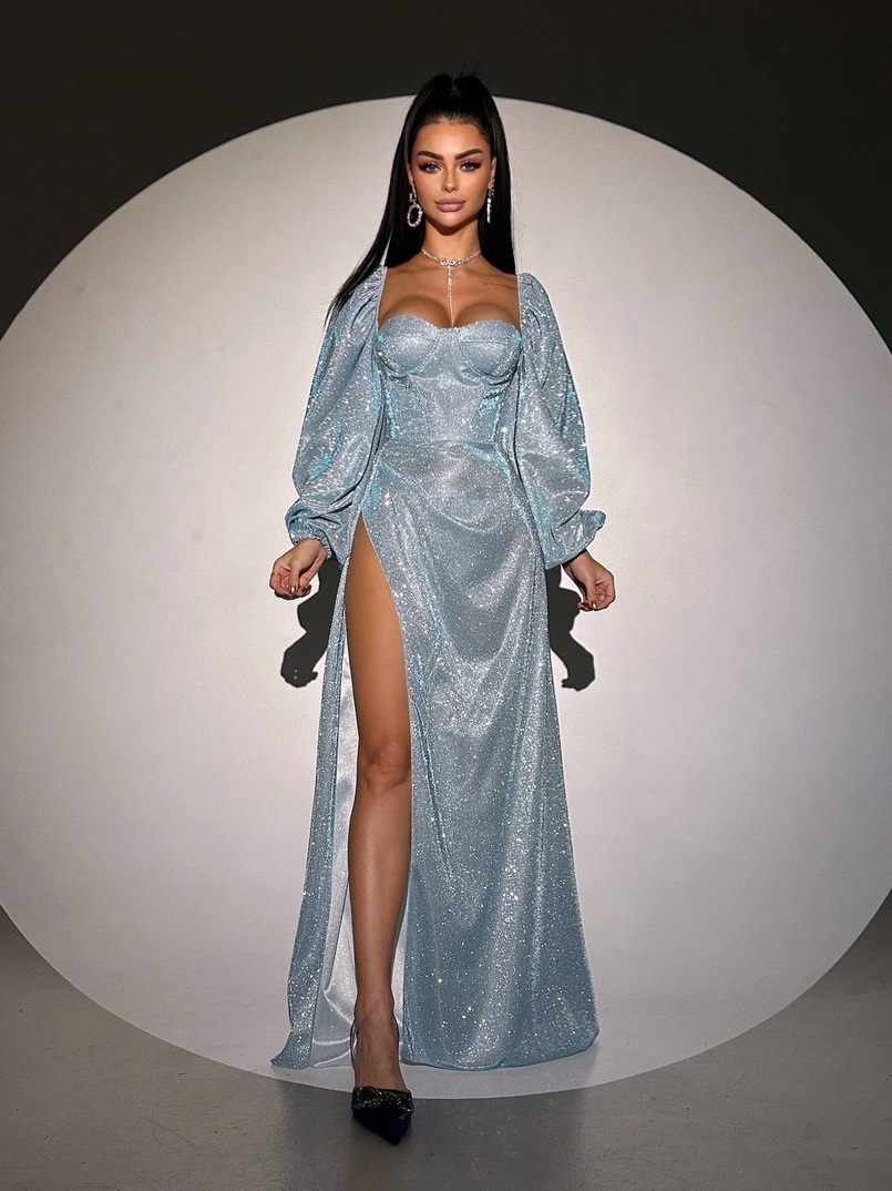 Сяючий комплект: корсет + спідниця максі з драпіруванням