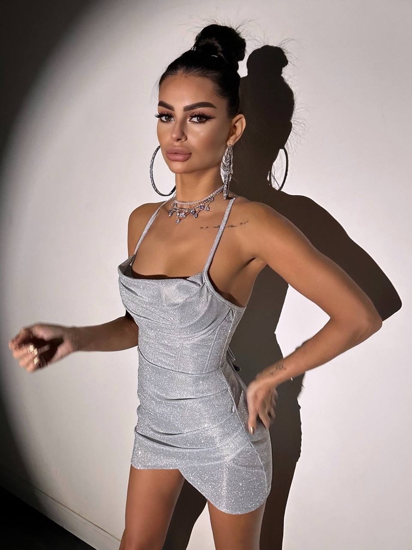 Сяючий комплект: корсет + спідниця міні з драпіруванням