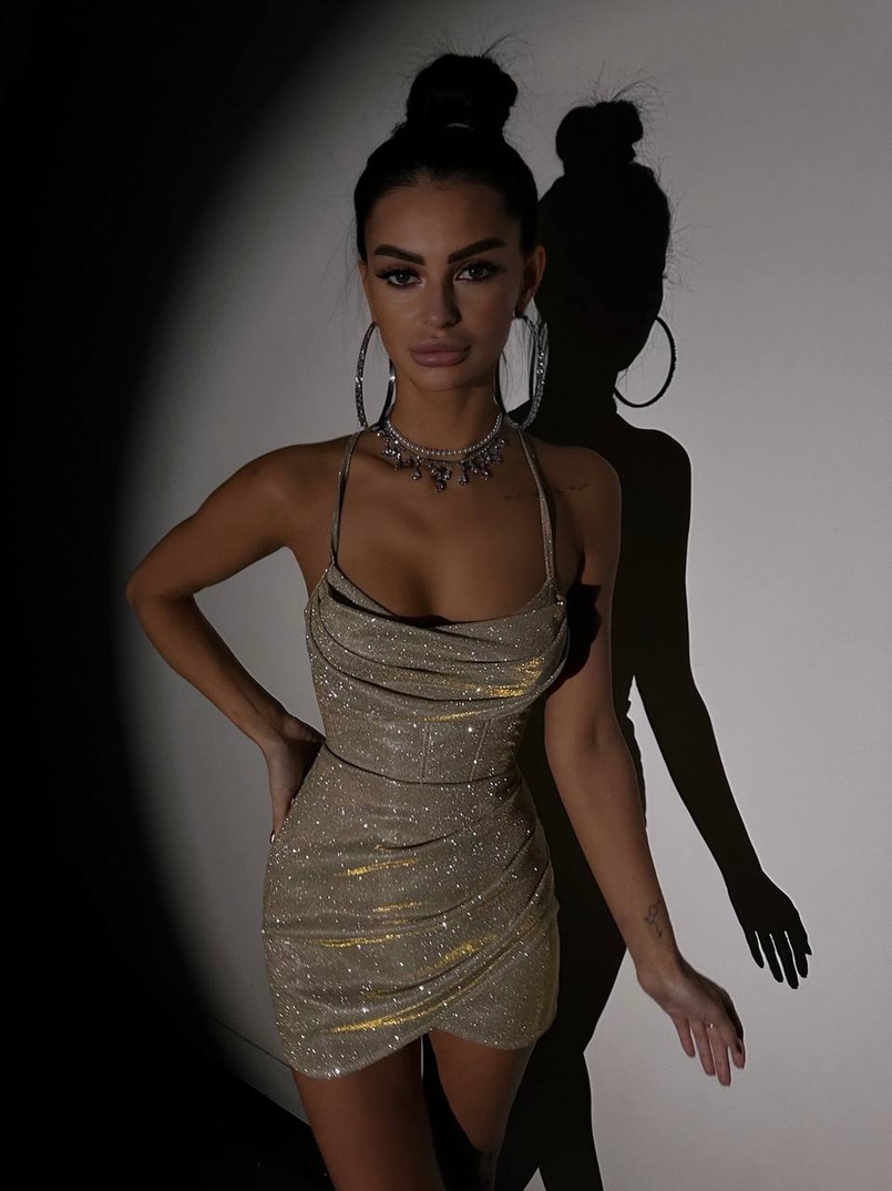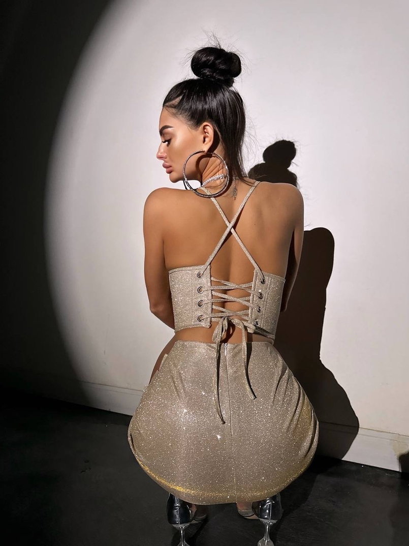 Сяючий комплект: корсет + спідниця міні з драпіруванням