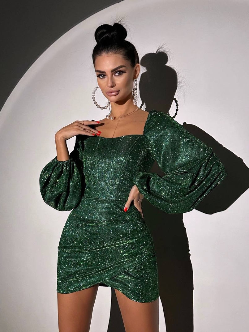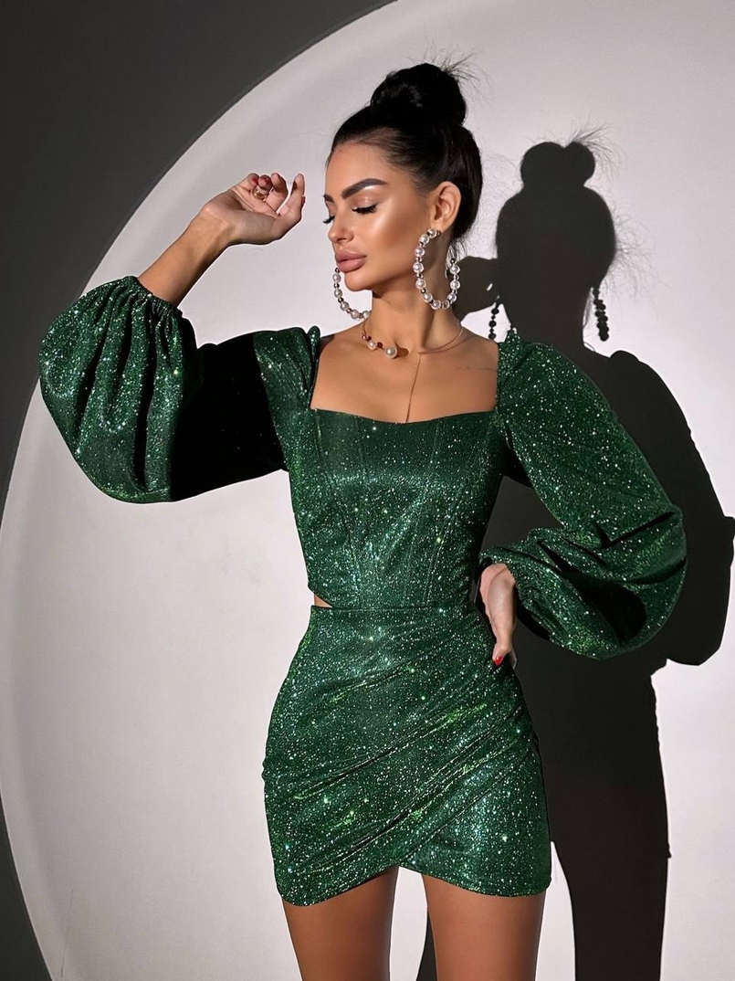 Сяючий комплект: корсет + спідниця міні з драпіруванням